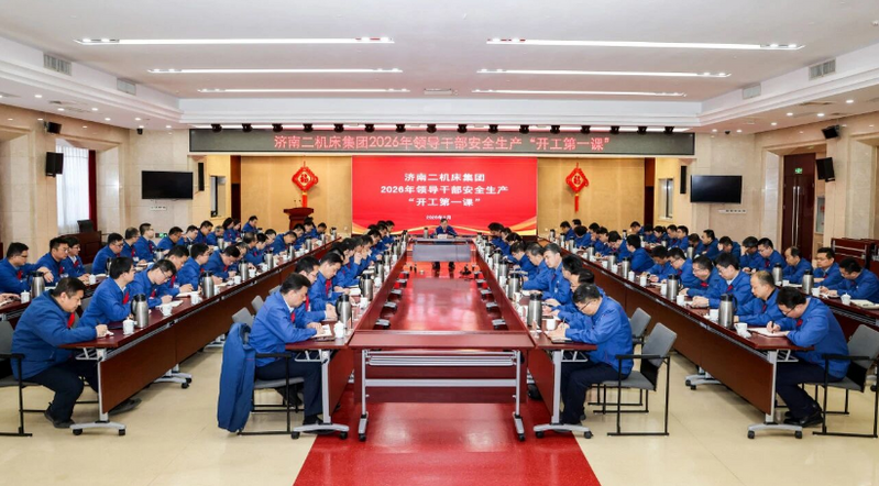 济南二机床集团组织开展“开工第一课”活动,集团党委书记、董事长任立伟专题讲授2026年安全生产“开工第一课”,并与相关单位代表签订《2026年安全生产目标管理责任书》,部分单位分别作安全承诺发言。与会人员还共同观看了生产安全事故警示教育片。